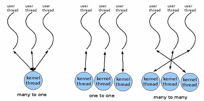 - Thread Kernel: Thread yang didukung langsung oleh kernel. Pembuatan, penjadwalan dan manajemen thread dilakukan oleh kernel pada kernel space. Karena dilakukan oleh sistem operasi, proses pembuatannya akan lebih lambat jika dibandingkan dengan thread pengguna. Thread kernel didukung langsung oleh sistem operasi. Pembuatan, penjadwalan, dan manajemen thread dilakukan oleh kernel pada kernel space. Pengaturan thread dilakukan oleh sistem operasi, sehingga pembuatan dan pengaturan kernel thread lebih lambat dibandingkan user thread.